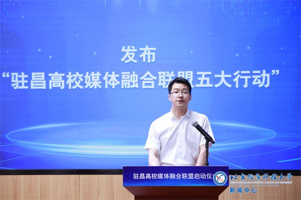 5月10日上午,驻昌高校媒体融合联盟启动仪式在我校沙河校区立德楼603报告厅举行。昌平区委常委、宣传部部长冯志明,区委宣传部副部长孟利群,区融媒体中心党组书记、主任丁伟明,未来科学城管委会校城融合处处长熊玉川等莅临活动现场。我校党委书记解江凌出席活动并致辞。