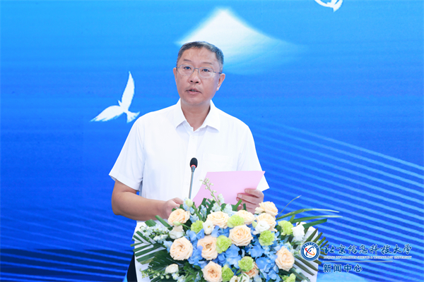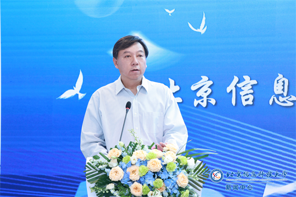 邱雪松代表北京邮电大学图书馆、全国通信电子高校图书工作委员会向我校新图书馆开馆表示热烈祝贺!他指出,北京信息科技大学新图书馆配备先进的技术设施,提供图书与信息技术服务,具备学术交流等功能,这些都将极大地丰富师生们的学习体验,促进跨学科合作与创新,激励更多师生利用新技术手段探索未知、挑战自我。他希望,两校未来能够强化交流,协同推动首都教育事业的发展和文化强国建设。