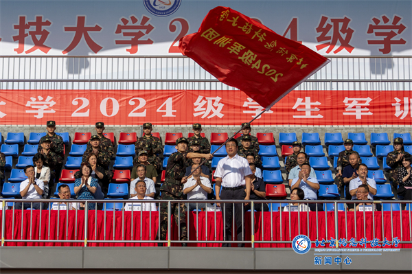 校党委副书记王文杰向2024级学生军训团授军训团旗。