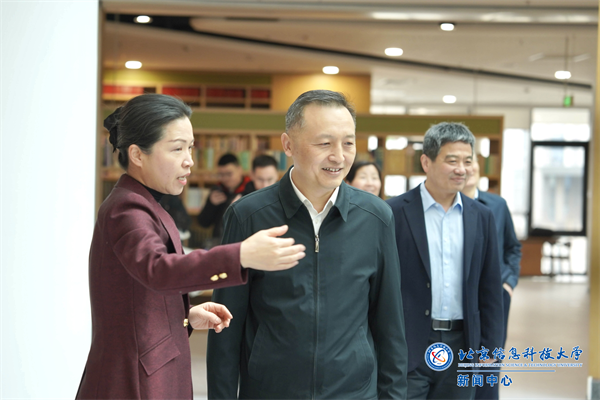 调研期间,张健一行在于世洁的陪同下实地调研参观了学校沙河校区沙盘、教学主控中心、智慧教室、科研成果展、图书馆等场所。