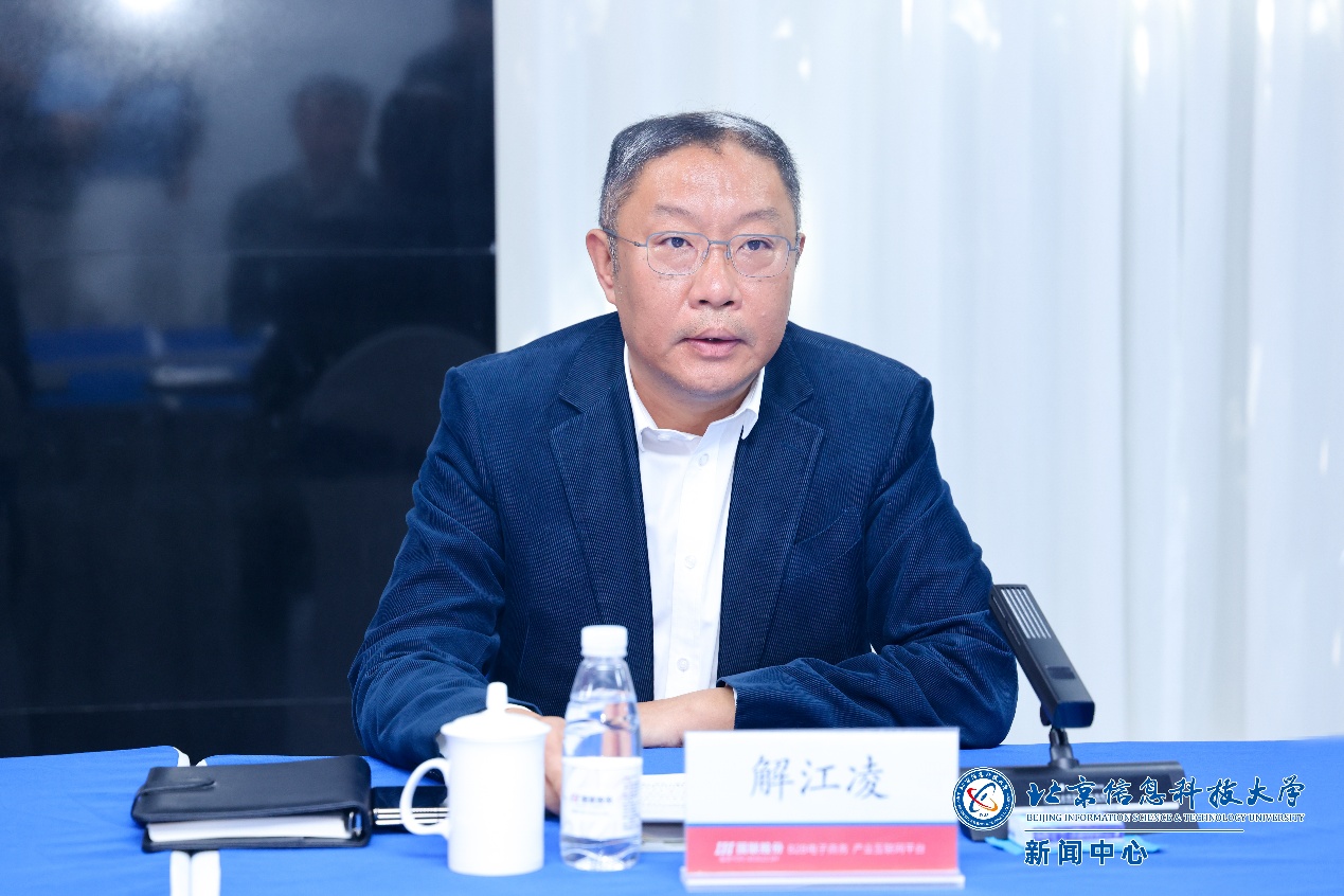 座谈会上,解江凌向丰台区委区政府及国联股份对此次合作签约所付出的努力表示感谢。他指出,丰台区作为首都功能拓展区,在服务国家战略和首都发展中具有重要地位;国联股份作为数字经济领军企业,在推动数字技术与实体经济深度融合方面成效显著,为区域发展做出了突出贡献。解江凌强调,信息科大在信息技术与智能制造领域有很深的学科积淀,优势显著,此次与国联股份共建协同创新中心,是贯彻落实国家“深化产教融合、加速教育数字化进程”战略的重要举措。他表示,通过构建全要素赋能体系,强化“政产学研用”协同创新机制,既能为丰台区高质量发展注入智慧动能与创新活力,又能有效提升学校科技成果转化效能与复合型人才培养质量,最终实现“政、校、地、企”多方共赢的新发展局面。解江凌特别发出邀请,诚挚欢迎各位领导莅临学校开展实地调研,为深化校地合作内涵建设、推动协同发展提质增效提供指导。