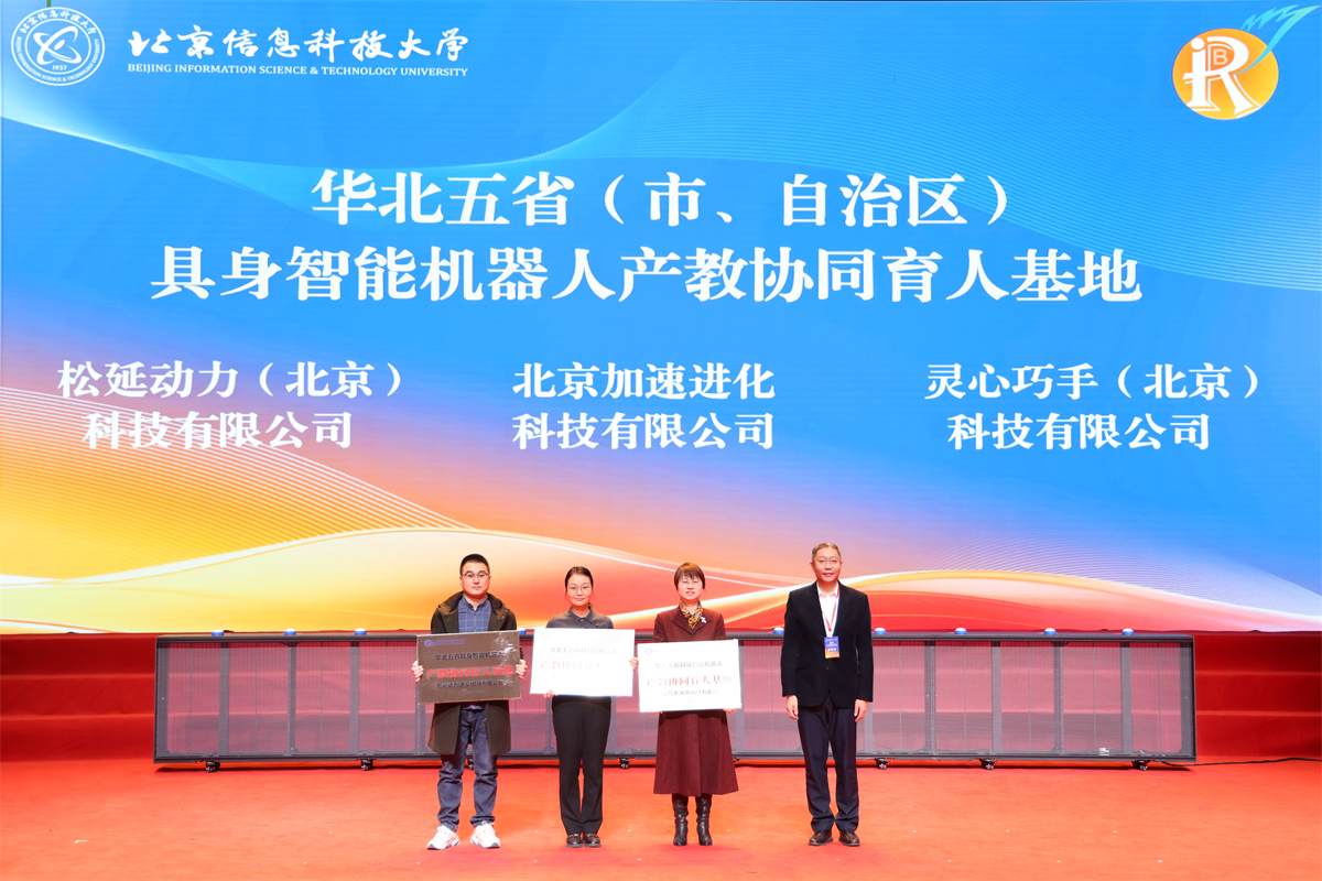 开幕式上,解江凌为松延动力、加速进化、灵心巧手三家企业授予“华北五省(市、自治区)具身智能机器人产教协同育人基地”牌匾,为未来机器人产业培养创新人才提供了更高层次平台。