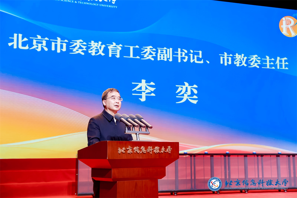 北京市委教育工委副书记、市教委主任李奕,北京市昌平区委副书记、区长、未来科学城党工委副书记、管委会主任刘晓东,昌平区政府副区长马春秀,北京信息科技大学党委书记解江凌,党委副书记、校长郭福出席开幕式。开幕式由校党委常委、副校长王兴芬主持。