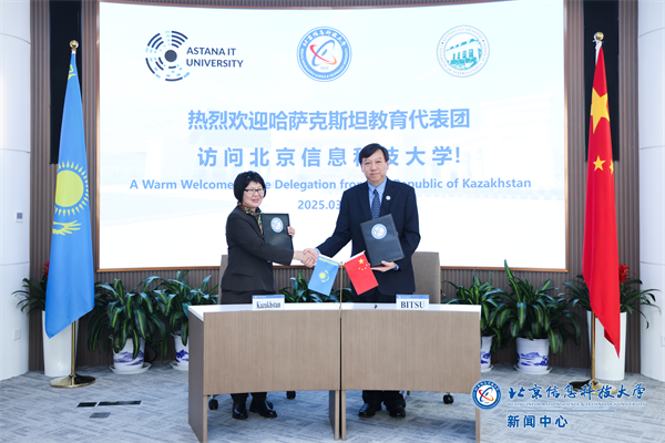 郭福代表学校向哈萨克斯坦教育代表团来访表示热烈欢迎,并从办学特色、学科专业设置、优势科研领域、校区功能布局、人才培养以及毕业生就业等方面简要介绍了学校的基本情况。郭福强调,学校始终秉持“把信息科大带到世界,把世界带到信息科大”的工作理念,坚持开放办学,持续扩大全球朋友圈,精心打造“留学信息科大”品牌,已与全球28个国家和地区的120余所高校建立友好合作关系。郭福指出,哈萨克斯坦是我校来华留学生的主要生源国之一,在校期间,他们勤奋好学、积极融入,成为中哈文化交流的桥梁,也为自身成长开拓了广阔空间。郭福表示,哈萨克斯坦是共建“一带一路”倡议的首倡之地,中哈两国以永久全面战略伙伴关系树立了互利共赢的典范,期待以本次签约为新起点,在师生互访、联合科研、合作办学等领域深化多模式探索,共绘两国教育合作新蓝图,为“一带一路”高质量发展贡献智慧与力量。