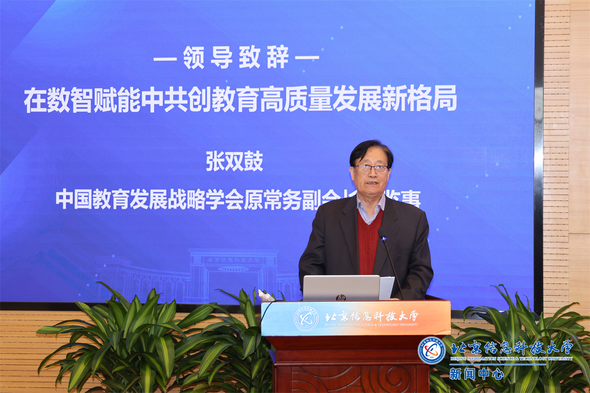 中国教育发展战略学会原常务副会长、监事张双鼓在致辞中向会议的召开表示祝贺。他指出,中国教育发展战略学会成立20年来,始终致力于推动教育改革发展的全局性、战略性和前瞻性研究。在此框架下,教育大数据专业委员会聚焦数据驱动、教育治理、技术赋能、教学变革等重大议题,开展了一系列前瞻性与实证性研究,为政策制定与区域实践提供了有力支撑。他充分肯定了北京信息科技大学在信息类优势学科建设与数智融合方面的实践与成果,并表示希望本次年会成为思想碰撞、经验共享与合作深化的平台,携手为推动教育高质量发展、加快建设教育强国贡献智慧与力量。