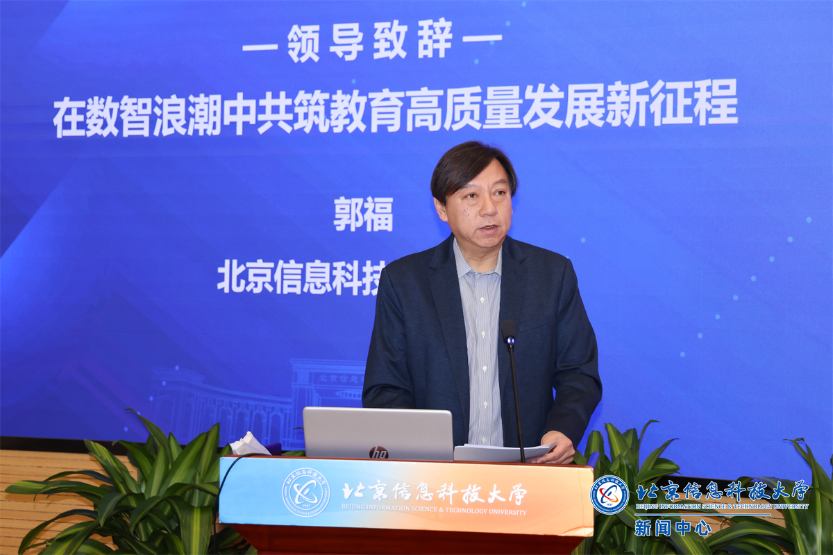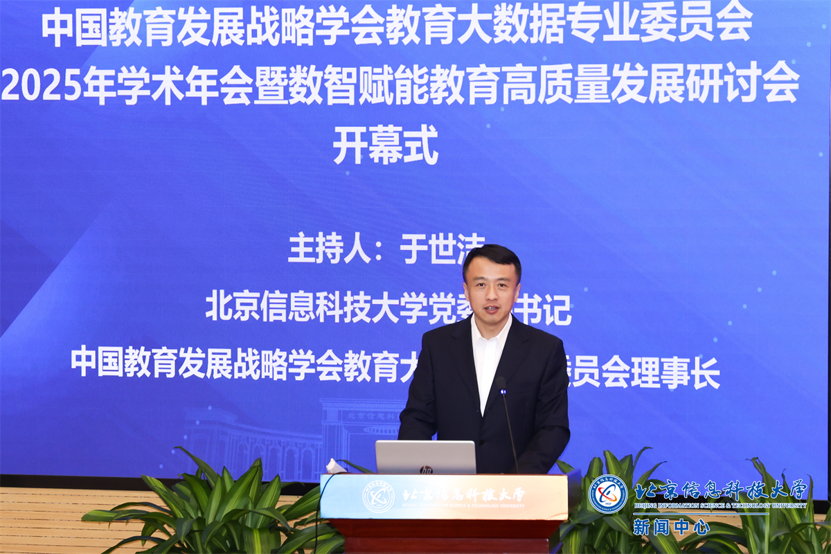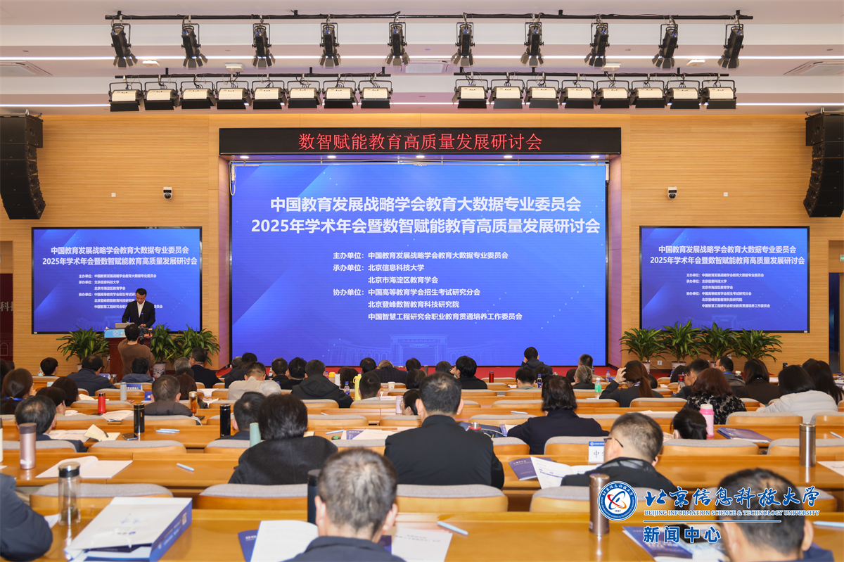 11月12日,中国教育发展战略学会教育大数据专业委员会2025年学术年会暨数智赋能教育高质量发展研讨会在我校沙河校区召开。会议由中国教育发展战略学会教育大数据专业委员会主办,北京信息科技大学、北京市海淀区教育学会承办,中国高等教育学会招生考试研究分会、北京登峰数智教育科技研究院、中国智慧工程研究会职业教育贯通培养工作委员会协办。来自高校、中小学、教育科研机构的专家学者、教育管理者及教师代表齐聚一堂,共同探讨数智技术赋能教育高质量发展的路径与前景。我校党委副书记、校长郭福出席会议并致辞。