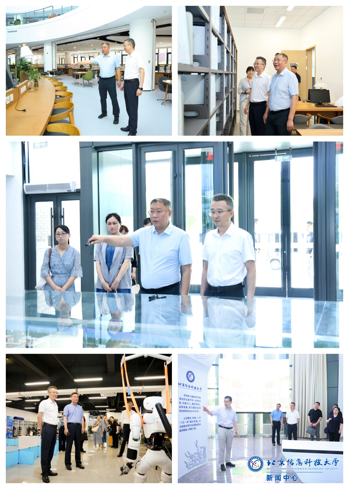 调研期间,孟波一行参观了我校沙河校区沙盘、图书馆、双创基地、科研成果展等场所,深入了解我校沙河校区整体规划与建设进展,图书馆知识产权系统建设情况,以及我校在科研成果转化等方面的实践探索和取得的成效。