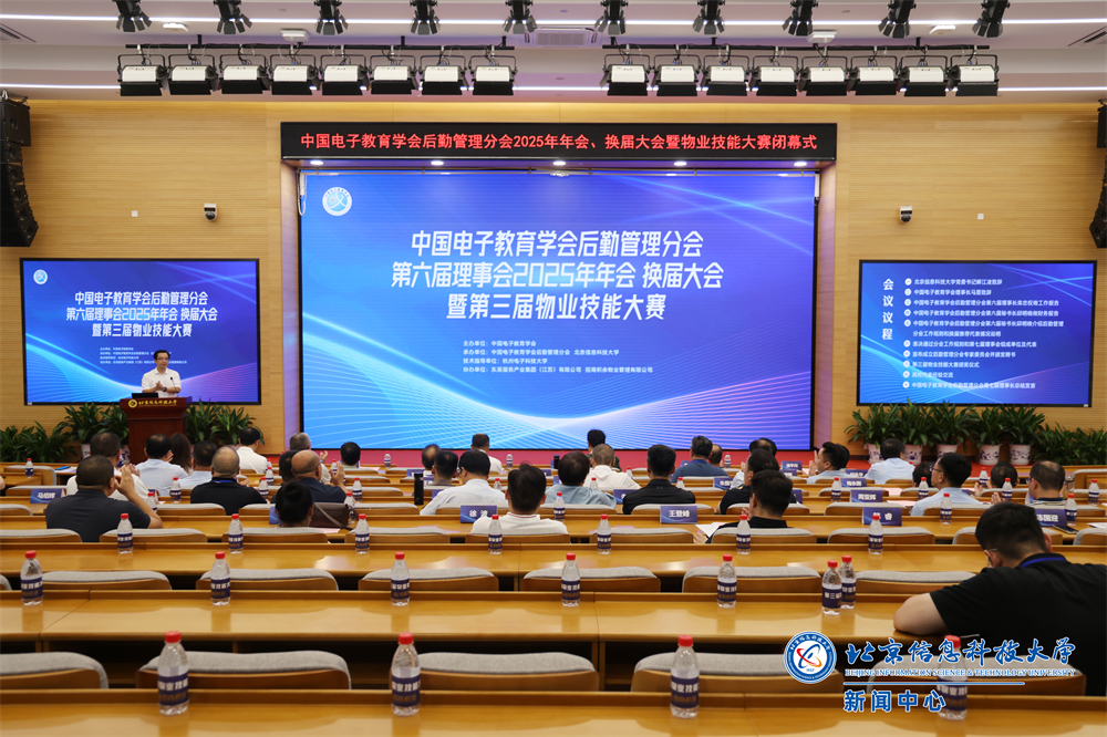 7月20日,中国电子教育学会后勤管理分会2025年年会、换届大会以及第三届物业技能大赛闭幕式在我校沙河校区举办。校党委书记解江凌出席会议并致欢迎辞,中国电子教育学会理事长马蔷出席会议并讲话。校党委常委、副校长李华涛,后勤管理分会常务理事会理事长、原校长助理栾忠权以及来自全国20所电子类院校分管后勤工作的校领导、后勤工作负责人和物业大赛获奖代表近百人参加会议。本次会议由中国电子教育学会主办,我校作为后勤分会的秘书长单位承办,杭州电子科技大学协办。