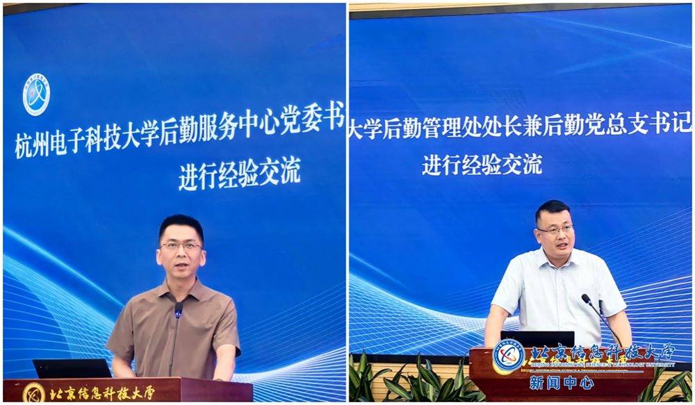会上,杭州电子科技大学和北京信息科技大学作为高校代表进行了经验交流。两校分别围绕“坚持绿色发展理念、推进无废校园建设”和“提升后勤服务品质、增强师生幸福感、获得感” 主题,分享了各自的后勤管理实践与创新成果。