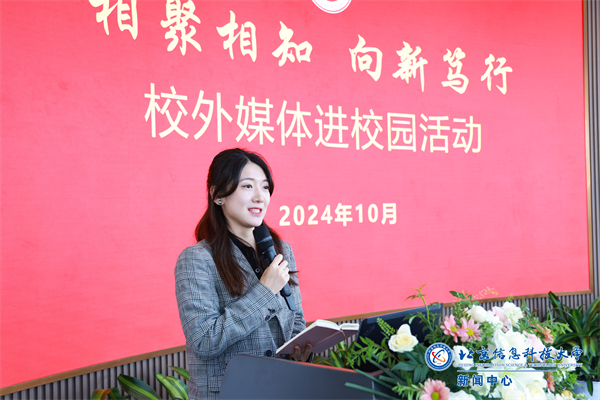 解江凌代表学校,向各位朋友、嘉宾的到来表示热烈的欢迎!向长期以来关心支持信息科大建设发展的媒体朋友表示衷心的感谢!解江凌在讲话中指出,一直以来,各位媒体专家用独特视角来宣传、推介、观察、思考北京信息科技大学的建设与发展,展现出了宽广的眼界、睿智的思想和专业的精神,见证、记录了信息科技大学落实立德树人根本任务、服务国家首都发展、支撑教育强国建设的努力和成效。解江凌表示,当前,学校按照“外树形象、内聚力量,服务师生、加快发展”的总体思路,全力打造温暖校园、安静校园、活力校园,做到了真正以服务国家战略和新时代首都发展为己任,切实把对师生的关心关爱落实落细,坚持将“勤实信行”作风建设作为带动学校奋力前行的动力引擎,努力让做大做强自己成为实现学校高质量发展的推动力,学校办学特色进一步凸显,办学水平也持续提高,各项事业展现出蓬勃的发展态势。解江凌强调,发展中的北京信息科技大学尤其需要各位媒体朋友的支持与帮助。解江凌期盼,大家既能够一如既往地关心关注信息科大的改革与发展,同时又能在需要的时候想到信息科大、宣传报道信息科大,吸引更多人走进信息科大、了解信息科大,为学校的建设发展提供坚强有力的舆论支持,更好地为首都高等教育,为教育强国建设贡献力量。