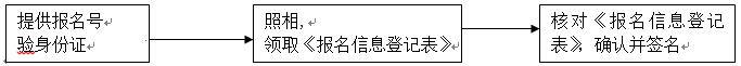 凭报名号和截至2017年6月仍有效的二代身份证到“照相处”照相,并领取打印出来的带照片的《报名信息登记表》一份。