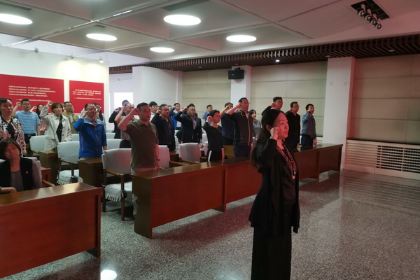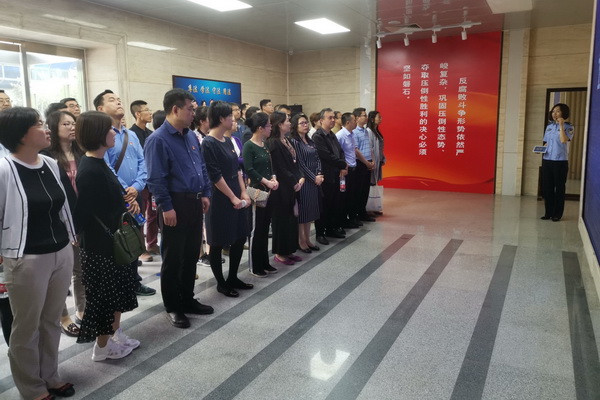 在参观的最后环节,党委统战部常务副部长姜伟华带领全体党员重温入党誓词,激发党员领导干部坚定共产主义信念,对党忠诚,不忘初心。全体党员观看了《中国共产党纪律处分条例》动漫宣传片,进一步加深了对党的六大纪律的认识和理解。