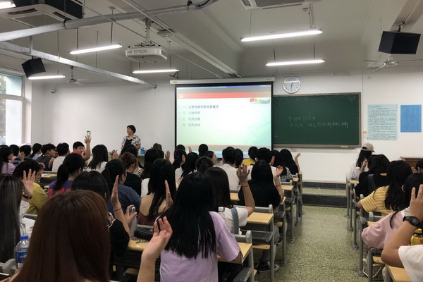 9月5日晚,公共管理与传媒学院于小营校区一教E13举办了2019年院级党课教育学习班第一讲。学院党委书记郭严俊为大一新生进行入党启蒙教育。学院党委副书记、学生党支部书记及2019级全体新生共同参加了本次党课学习。