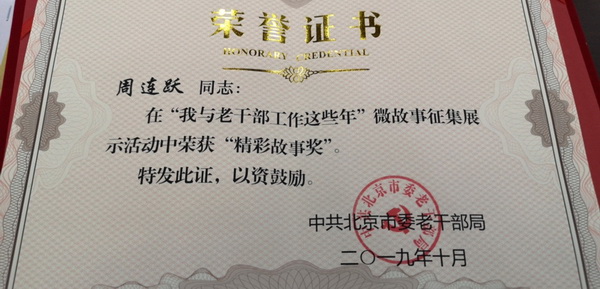 我校离退休工作处周连跃荣获市老干部局“我与老干部工作这些年”微故事“精彩故事奖”