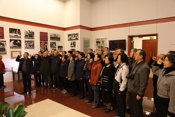 在毛泽东纪念室内,全体党员在离退休党委书记吴俊法的带领下郑重宣誓,重温入党誓词。此次参观学习是离退休党委“不忘初心、牢记使命”主题教育的重要内容,通过瞻仰伟大领袖,缅怀革命前辈,追忆党和国家的发展历程,激发离退休党员的爱党爱国热情,坚定理想信念,增强党性修养,是一次生动深刻的精神洗礼和党性教育。