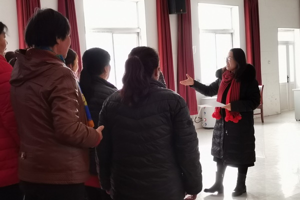 校团委郭颖老师亲自赶赴称沟湾村进行现场辅导。正值雪后,大雪封山,郭颖老师顾不上家里生病的老人和孩子,绕道30公里进山为村民合唱团辅导培训。往返在路上就奔波了6个小时。天不亮就出门,天黑才到家。培训结束,郭颖老师以一曲甜美的独唱献给乡亲们,表达新年的祝福。