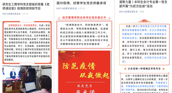 抗击新型冠状病毒感染肺炎重大疫情以来,经济管理学院党委把学生党员作为抗击疫情的中坚力量,坚持党建引领,将党旗插在抗击疫情最前线,带领经管学生党支部科学防疫,同心抗“疫”,组织开展了一系列党建引领工作。