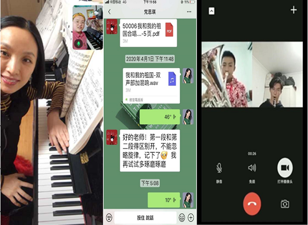 民盟信息科大支部成员、校团委艺教中心的肖潇老师通过线上教学指导,确保学生艺术团训练保质保量,也促进了学生在疫情期间的身心健康发展。