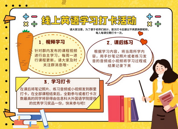 外国语学院与前门街道团工委联合发起,对前门社区居民进行英语辅导。志愿服务项目发挥北京信息科技大学外国语学院青年学生的专业优势,以网络为平台,在疫情防控期间英语学习交流不间断,满足了社区居民英语学习需求,获得社区居民的高度赞扬。