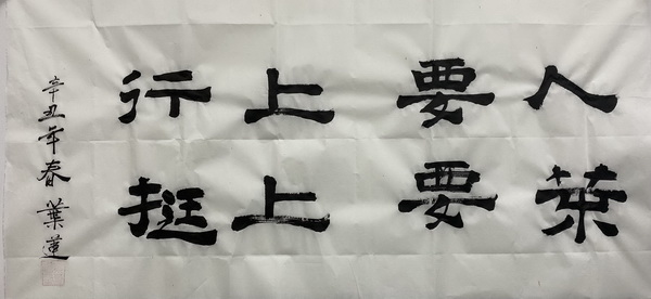 叶挺原名叶为询,其小学老师陈敬如为他改名叶挺,勉励他人要上行,叶要上挺。叶莲女士题笔“人要上行,叶要上挺”赠予我校青年学生。