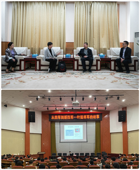 学院邀请了原中国人民解放军总参谋部参谋、叶挺将军孙女叶莲女士莅临我校,为学院师生举行了“从四军到新四军——叶挺将军的故事”主题报告。报告会上,叶莲女士结合大量详实的史料,满怀深情地追忆了叶挺将军戎马倥偬的一生,叶挺将军忠于党、忠于人民的高贵品格深深地打动了与会师生,阵阵经久不息的掌声,表达了大家对叶挺将军的无限敬仰之情。