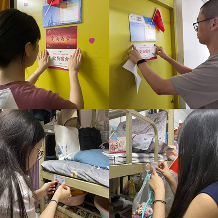开展“亮身份、敢担当、勇作为”党员亮身份活动。学院为每名学生党员制作了党员名帖,为每个含有党员的学生宿舍制作了宿舍贴牌。党员名帖上印有姓名与隶属党支部,并标有“理学院党委”与“庆祝建党一百周年”的标识。学院鼓励学生党员在宿舍床位粘贴“党员名帖”,在宿舍门口挂牌“党员宿舍”。通过让学生党员亮明身份、树立形象,让学生党员时刻牢记党员身份,在工作、学习与生活中做到言行一致、争先创优。