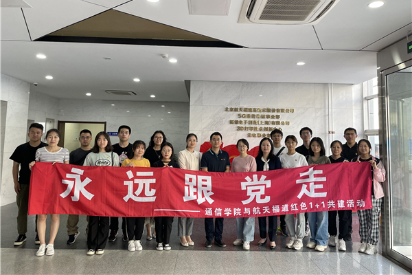 6月17日下午,通信学院组织学生党员、入党积极分子来到中国航天科工二院,通信专业本科生第一党支部与二院二十五所福道公司党支部开展“永远跟党走”红色1+1共建活动。学院副书记冉屏,辅导员康延、史文硕带队参加本次活动。