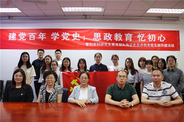 6月7日,管科学科研究生党支部与海淀区党史地方志办公室机关党支部开展“建党百年 学党史;思政教育 忆初心”共建活动。田颖同志讲授了《李大钊与海淀》主题党课,共同学习李大钊同志坚定的爱国主义精神和对马克思主义的坚定信仰。