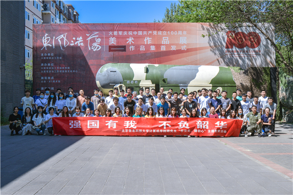 7月,2019级和2020级共计200余名研究生在学院党委副书记邵飞、团委书记韩聪钰的带领下,前往八一美术馆,参观“东风浩荡”—火箭军庆祝中国共产党成立100周年美术作品展。展览设置了“浴血荣光”“雷霆破晓”“逐梦九天”“崭新征程”四个篇章,共展出国画、油画、版画、色彩画、雕塑、装置、综合材料等艺术作品100件,每一件作品都记录着百年党史的珍贵瞬间,也记录着在中国共产党领导下,战略导弹部队历经岁月沧桑,精心铸件、潜心厉剑、善于亮剑,在强军路上谱写的热血战歌。