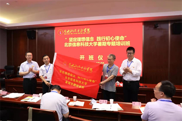 7月20日上午,培训班举行开班仪式。张琳在动员讲话时强调,此次培训是学校党委深入贯彻习近平新时代中国特色社会主义思想、加强党史学习教育的具体举措,希望参训学员认真学习南水北调精神,感悟人民至上、协作共享的国家精神,艰苦奋斗、创新求精的工程建设精神,顾全大局、爱国奉献的移民精神,忠诚担当、攻坚克难的移民工作精神,进一步鼓舞斗志、明确方向,坚定信念、砥砺品格,紧密结合国家发展的新趋势和学校建设的新要求,认真开展各项工作,勇于探索实践,主动担当作为,在努力“建最好的大学”过程中实现“做最好的自己”。南水北调干部学院党委委员、副院长赵庆波致欢迎辞,并向培训班授班旗。