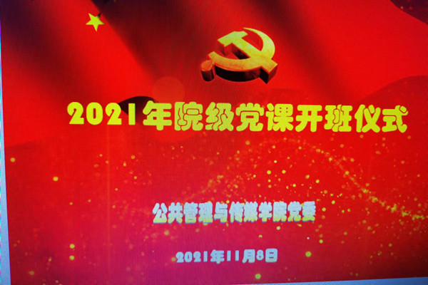 11月8-17日,公管传媒学院举办2021年院级党课。为严格落实疫情防控要求,本期院级党课教学以线上形式展开,共59名入党积极分子参加。学院党委书记刘斌、学生日常工作负责人单晴雯、组织员张家林,参加了11月8日举行的本期院级党课线上开班仪式。
