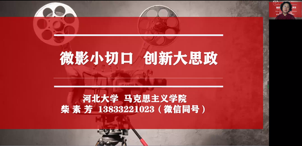 4月20日下午,马克思主义学院邀请河北大学马克思主义学院教授、博士生导师柴素芳开展“微影小切口,创新大思政”专题讲座,旨在贯彻落实“大思政课”理念,深化我校思政课实践教学,推动“我心中的思政课”——大学生微电影展示活动的竞赛工作,帮助广大参赛师生更好地认识与参与比赛。马克思主义学院教师、研究生和部分本科生通过线上与线下相结合的形式参加了此次讲座。