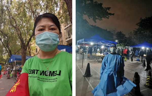 学院党委书记郭银辉以及周飞跃、刘文涛、彭燕、孙靳等老师主动报名参加社区疫情防控工作,承担信息录入、维持秩序和扫码等工作。
