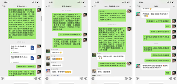 尽管目前不是研究生导师,自身教学科研任务也很繁重,钟俊平还是经常利用休息时间与同学们研讨交流科研话题,提出针对性意见和建议,增强研究会成员的学术积极性,并带领学生梳理“党史理论词汇”和“党的十八大以来重要文献讲话”,形成师生学习研究资料成果汇编等,在学习研究过程中着力提高研究生的思想政治教育质量。他还积极组织研究会成员参与学院思政微课录制工作。疫情期间,他通过微信对学生讲稿逐一进行详细指导,多次组织校内外专家、教师参与微课试讲指导,有时会连续指导学生几个小时,直到深夜。
