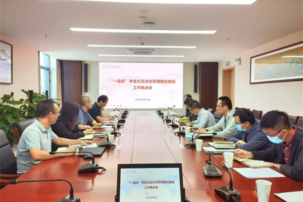 9月23日上午,“一站式”学生社区综合管理模式建设工作推进会在新校区立德楼307会议室召开。学生处、后勤处、安稳处、网管中心、校团委等职能部门负责人,学院党委副书记代表参会研讨。校党委副书记周志成参会并听取专题汇报。