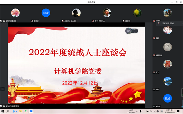 12月12日,计算机学院线上召开统战人士座谈会,学院党委委员、民主党派教师参加会议。会议由学院党委副书记(主持党委工作)兼副院长梁旭主持。