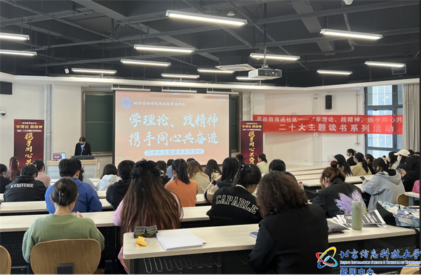 4月23日,为落实党中央关于深入学习宣传贯彻党的二十大精神、开展好主题教育的部署要求,全方位加强学生党支部思想建设,充分发挥“一站式”学生社区育人作用,经济管理学院举办思政教育进社区——“学理论 践精神 携手同心共奋进”党的二十大主题读书系列活动启动仪式。活动主会场设在太行路校区信息楼C座305教室,同时在学二公寓、学三公寓党团活动室设置分会场,学院团委书记费衍慧、党建辅导员张京蕊及百余名学生党员、入党积极分子参加仪式。启动仪式由学院党建辅导员杜文涛主持。