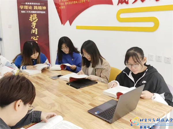 同时,分会场开启现场集中研读学习活动。张京蕊带领同学们在党团活动室研读红色好书、交流阅读体会。
