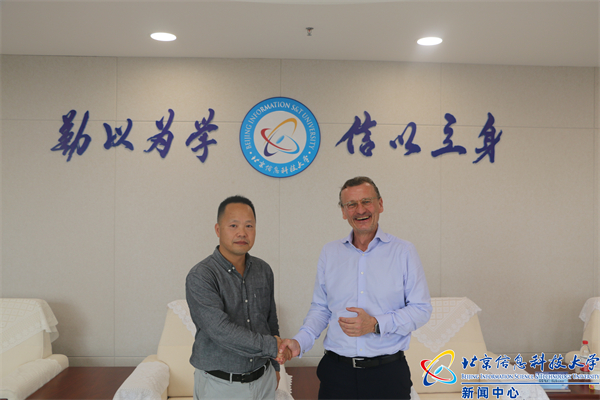 肖志松向克莱明格致以热烈欢迎并介绍了学校基本情况。肖志松指出,北京信息科技大学与汉堡工业大学同为以工科为主的学校,同时在管理学领域具有一定优势,也均注重培养具有工程背景及管理能力的复合型人才。肖志松表示,此次莱明格院长来校进行“如何成为复合型国际化人才”为题的讲座,将对我校在培养复合型国际化人才及学生的自身发展规划方面提供有益启发。希望两校以本次来访和讲座为起点,增进相互了解,开启在人才培养及科研领域的合作。