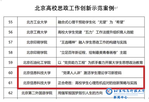 学校3个项目入选新时代北京高校思想政治工作创新示范项目