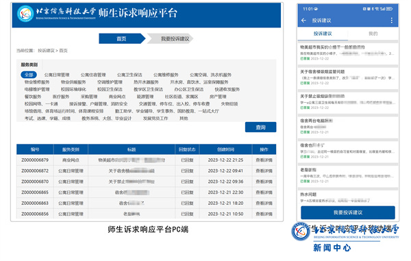 “师生诉求响应平台”原本是智慧后勤系统的“服务监督”模块,用以解决后勤系统的意见、建议,并受理投诉。后勤处处长助理王海璐老师说:“在平台使用过程中,发现经常有其他类别的非后勤、网信领域的诉求,后台接诉人员无法直接回复,只能明确主责部门和联系电话,让问题反应者直接电话联系主责部门解决问题,处理效率无形当中打了折扣。” “勤实信行”作风建设启动以来,在学校党委的统筹下,当前新增了党校办、组织部、安稳处、学生处、教务处、体育部6个部门入驻平台,新增诉求大类8个,小类25个,让部门可以直接回应师生关切,缩短了回复链条,提高了办事效率。