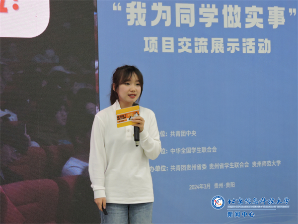 3月22日-24日,由共青团中央指导、全国学联主办的全国高校学生会组织“我为同学做实事”项目交流展示活动在贵州贵阳成功举办。北京信息科技大学学生会申报的“老师来了”师生权益交流平台从1724所高校的3581个项目中脱颖而出,荣获优秀项目奖(全国300个)。我校学生会主席团成员孙楚凝、吕佳琪参与现场答辩。