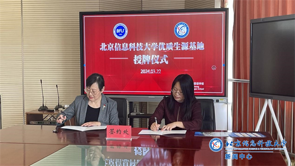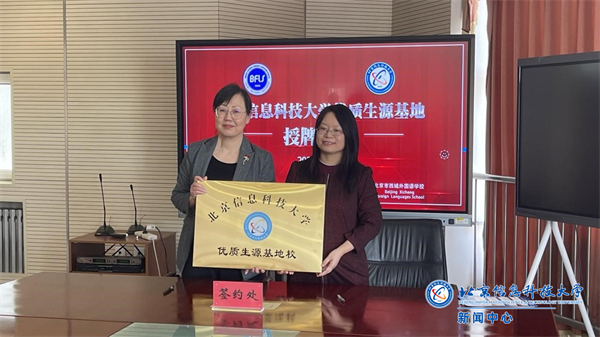 仪式上,王爱文代表学校与范雪梅正式签署两校合作协议,并向西城外国语学校授予“优质生源基地校”牌匾。