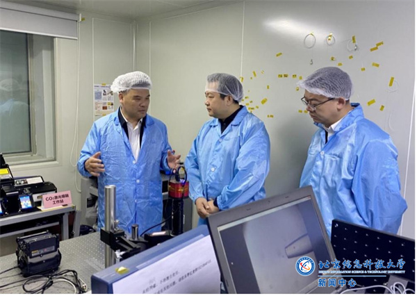 在教育部重点实验室主任祝连庆教授的陪同下,杨洪福一行参观了光电测试技术及仪器等两个教育部重点实验室,观看了实验设备操作演示,听取了实验室对光纤传感与系统、新一代超晶格红外探测器、光电子集成计算芯片等光电检测与智能感知技术研究和应用情况的介绍。