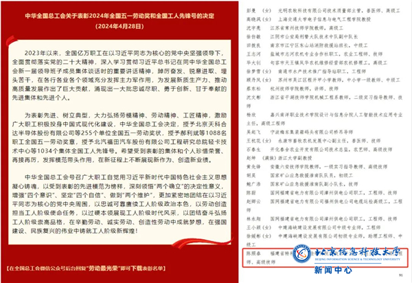 致敬!北京信息科技大学校友陈照春荣获2024年“全国五一劳动奖章”