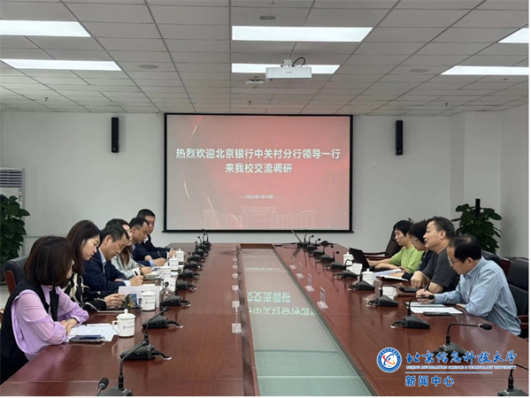 方德英对北京银行中关村分行一行来校调研交流表示欢迎。他介绍了学校的总体情况和办学特色。他表示,一直以来学校高度重视智慧校园建设工作,2023年获评首批北京市智慧校园示范校。学校智慧校园建设能够取得现有成效得益于新校区顶层设计到位,为后续建设工作持续有效推进奠定了坚实的基础。希望双方经验优势互鉴、优质资源共享、围绕科教融合协同育人、综合金融业务、智慧校园建设等方面进一步深化多元务实合作,以高质量银校合作的创新范本为首都高等教育高质量发展作出更大贡献。
