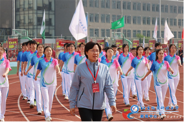 我校党委常委、副校长王兴芬带队参加了运动会开幕式,校体育部吴淑君、江群老师作为指导教师带领来自不同学院的17位同学报名参加了18个项目的争夺。
