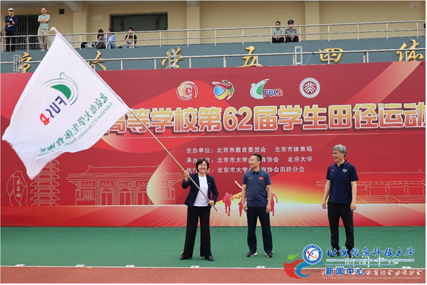 闭幕式上,王兴芬代表学校从北京市教委副主任王攀和北京大学副校长王博手中接过了象征举办权的北京市大学生体育协会会旗,赛会秘书长张威宣布首都高等学校第63届学生田径运动会将于2025年5月在北京信息科技大学举办。