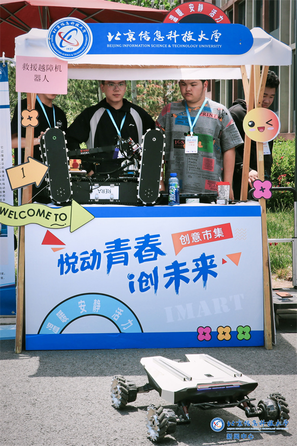 参加活动的领导、老师和同学们沿着桃李路,一起体验创意市集活动。大家三五成群,在交流中感受特别的社区体验。在科技体验区,来自机电、光电、自动化、信通和计算机学院的同学们,展示了救援越障机器人、高速湿敏传感器、ikid 类人足球机器人、海洋轻型探索机器人、3d打印机、湖泊表层杂物清理装置、桌面小狗、回忆方块等科创作品。