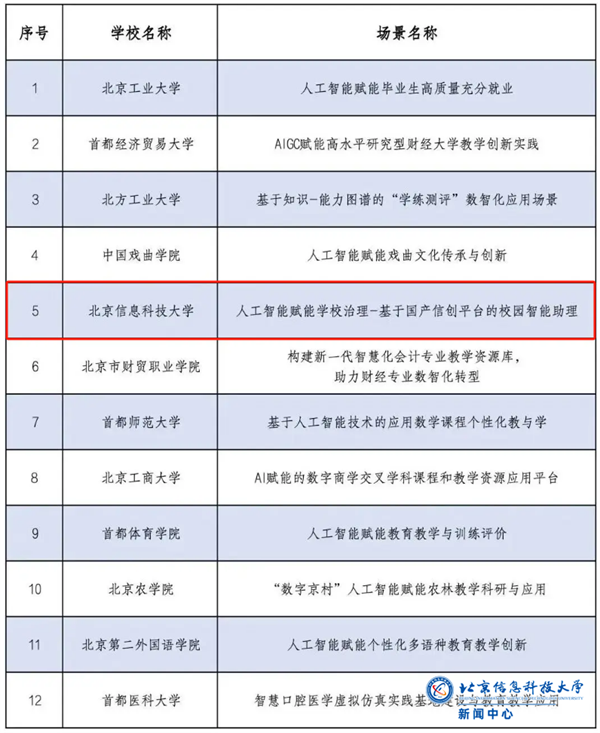 6月13日,北京市教委公布首批高等教育人工智能典型应用场景培育名单。我校报送的“人工智能赋能学校治理——基于国产信创平台的校园智能助理”项目成功入选。